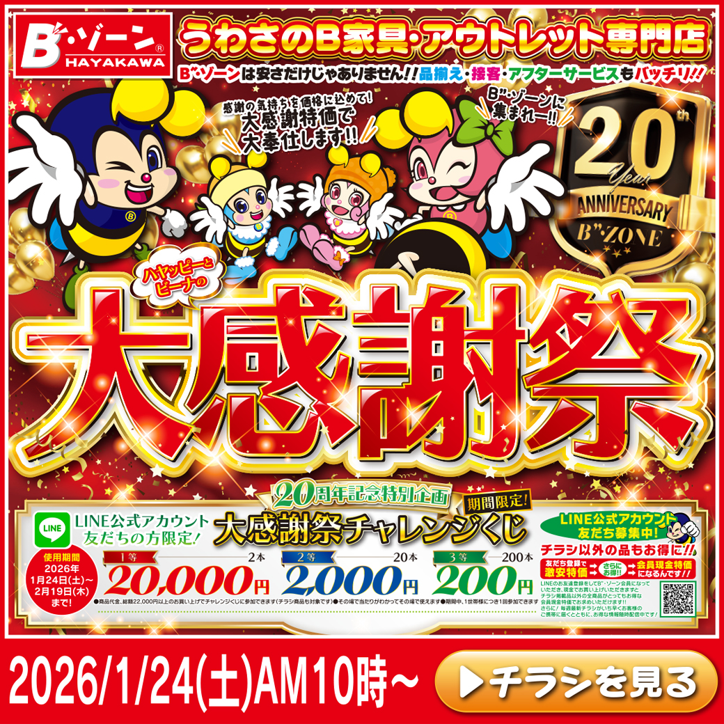 営業時間 午前10:00〜午後7:00 ■公式 YouTubeチャンネル■ チャンネル登録してB”・ゾーンのお役立ち情報をゲット! ↓ クリックして覗いてみてね!↓ ▶Bゾーンの感染防止対策はこちら◀ 新着情報 2026年1月21日 NEW! 【期間限定☆割引クーポンのお知らせ】 2026年1月15日 1月17日(土)「ハッピー☆ニューイヤーSALE!」THEラスト!開催♪ 2026年1月7日 1月10日(土)「ハッピー☆ニューイヤーSALE!」第2弾!開催♪ 2025年12月31日 2026年1月3日(土)「ハッピー☆ニューイヤーSALE!」開催♪ 2025年12月31日 【期間限定☆割引クーポンのお知らせ】 2025年12月25日 12月27日(土)「THE☆LASTセール!」開催! 2025年12月19日 12月20日(土)「クリスマス☆SALE!」THEラスト!☆開催♪ 2025年12月10日 12月13日(土)「クリスマス☆SALE!」第2段☆開催♪ 2025年12月3日 12月6日(土)「2025・Xmas☆セール!」開催♪ 2025年12月3日 【期間限定☆割引クーポンのお知らせ】 Facebooktwitter